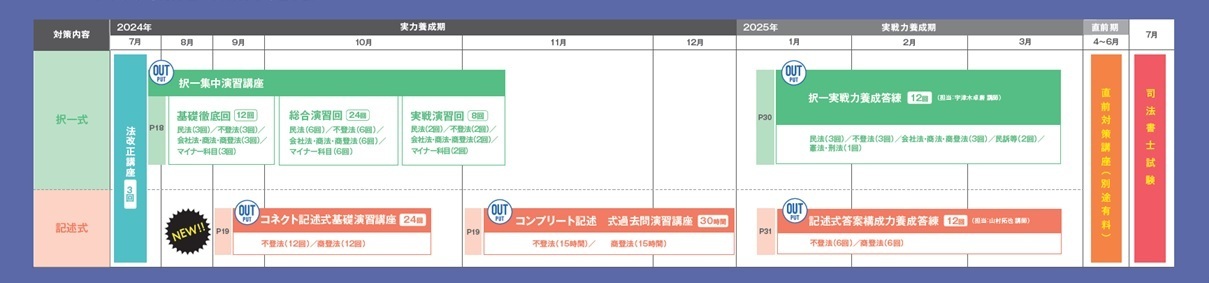 年明けからは出題予想を兼ねた完全オリジナル問題の記述式答案構成力養成答練が始めるので、年内は過去問レベルの学習をしっかり行うことができ、より記述の実力を伸ばすことができます。