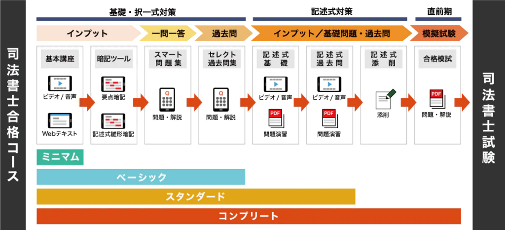 | 合格コース ミニマム | 合格コース ベーシック | 合格コース スタンダード | 合格コース コンプリート | コンプリート 冊子テキスト付 | |